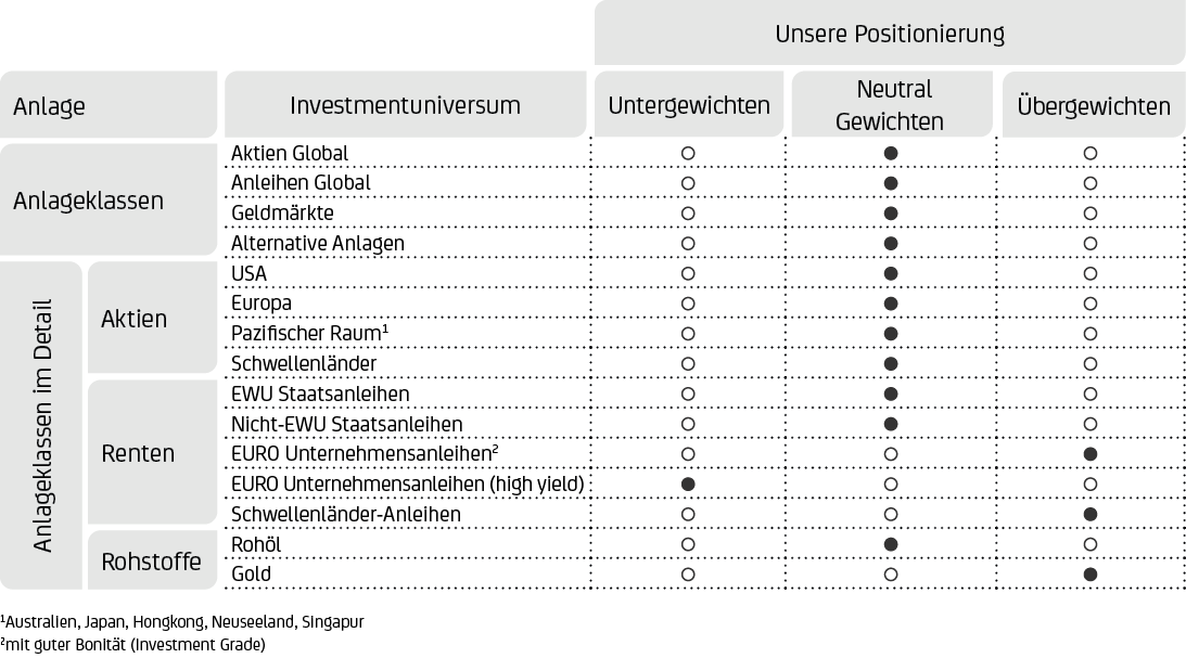 Cash bietet interessante Renditen, aber wir präferieren Anlagen in renditestärkere festverzinsliche Anlageklassen wie Euro-Unternehmensanleihen und Schwellenländeranleihen.